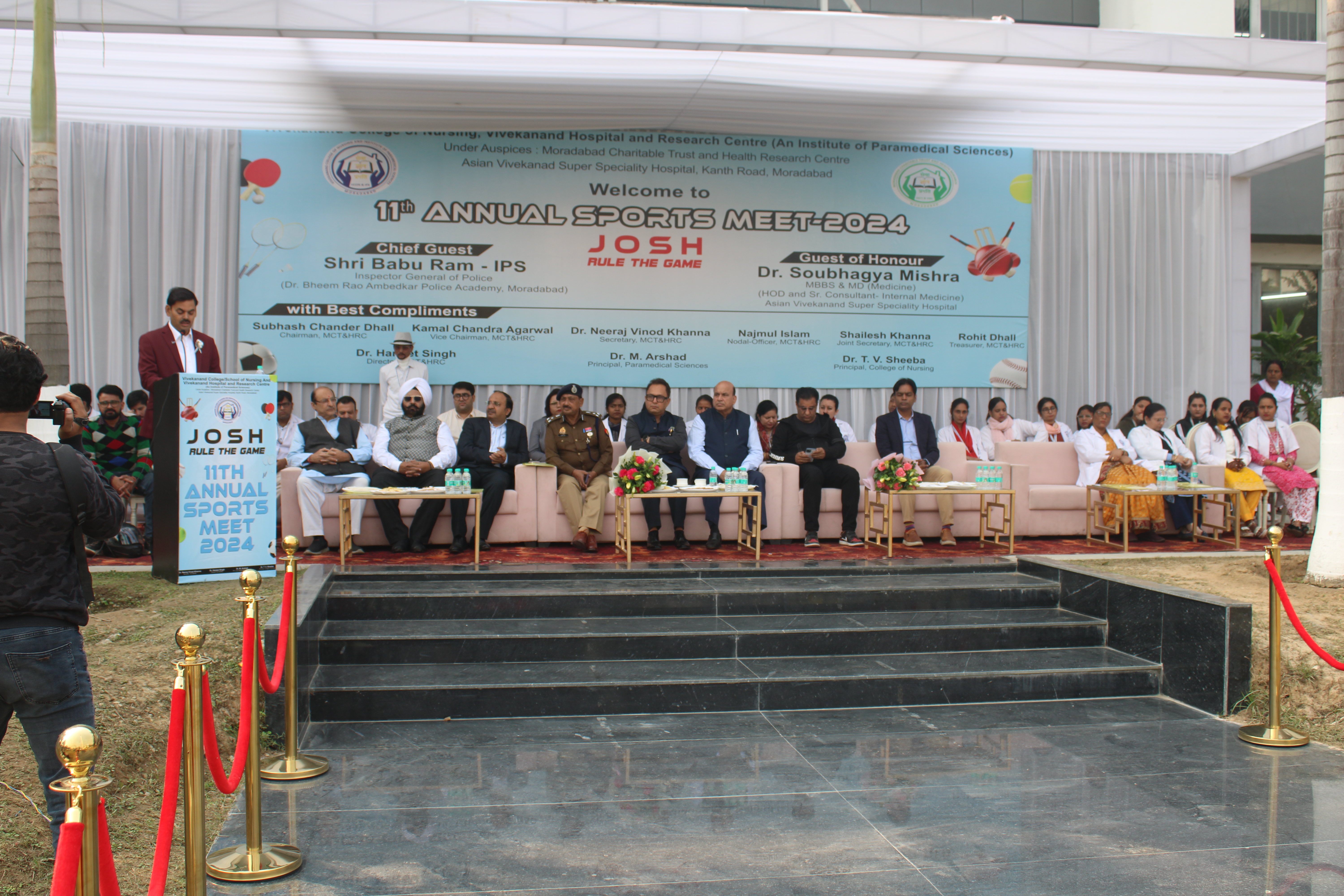 On 25th November 2024, Vivekanand College of Nursing proudly hosted its 11th Sports Meet, celebrating the spirit of fitness, teamwork, and determination. The event was graced by Chief Guest Shri Babu Ram (IPS), Inspector General of Police, Moradabad, and Guest of Honour Dr. Shobhage Mishra (MBBS, MD – Medicine), Asian Vivekanand Super Specialty Hospital. The day was filled with vibrant sports performances, inspiring speeches, and enthusiastic student participation, making it a memorable celebration of youth and energy.
